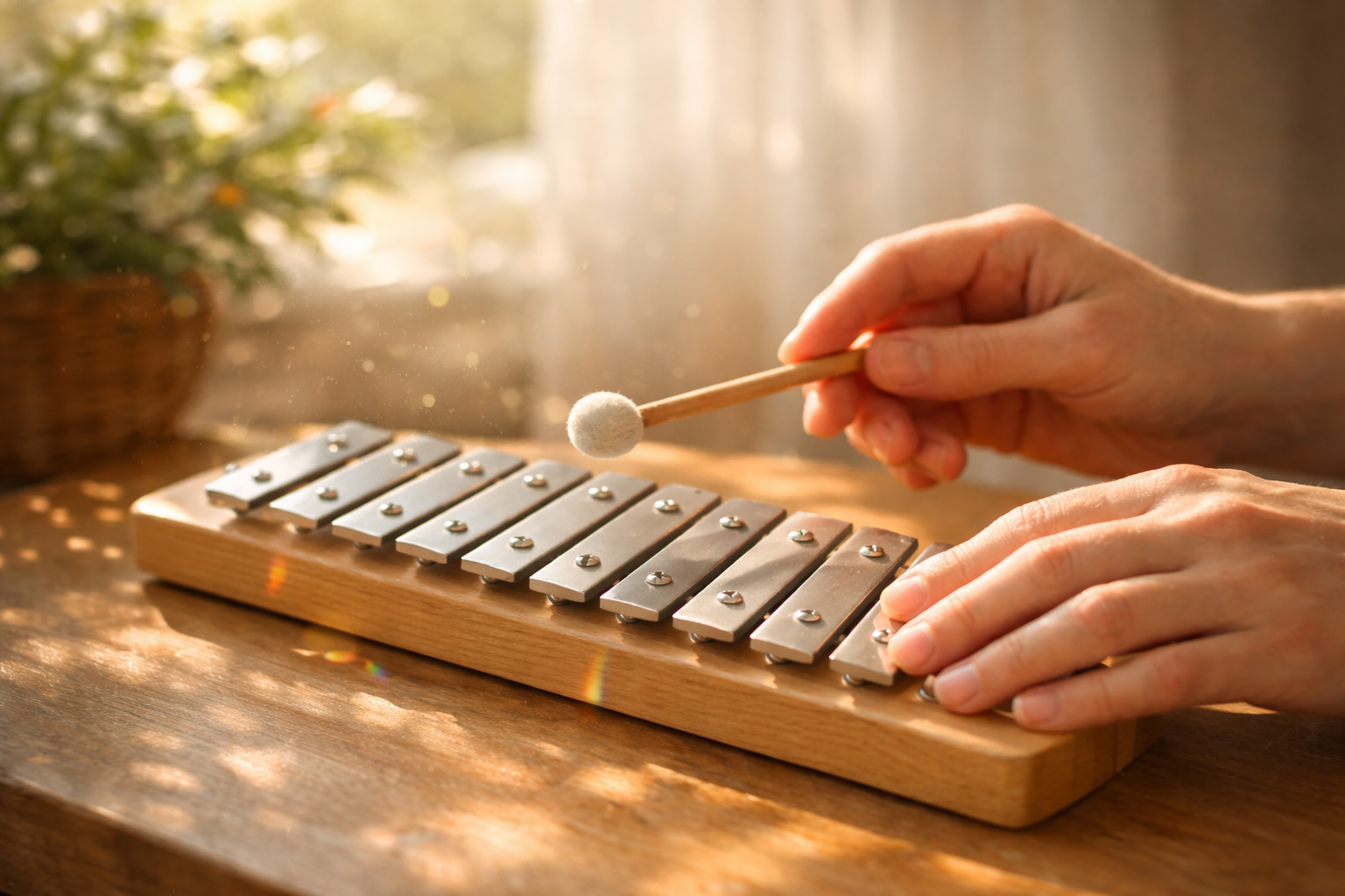Klangspelets klara, skimrande ljud skapar en känsla av lugn och närvaro.