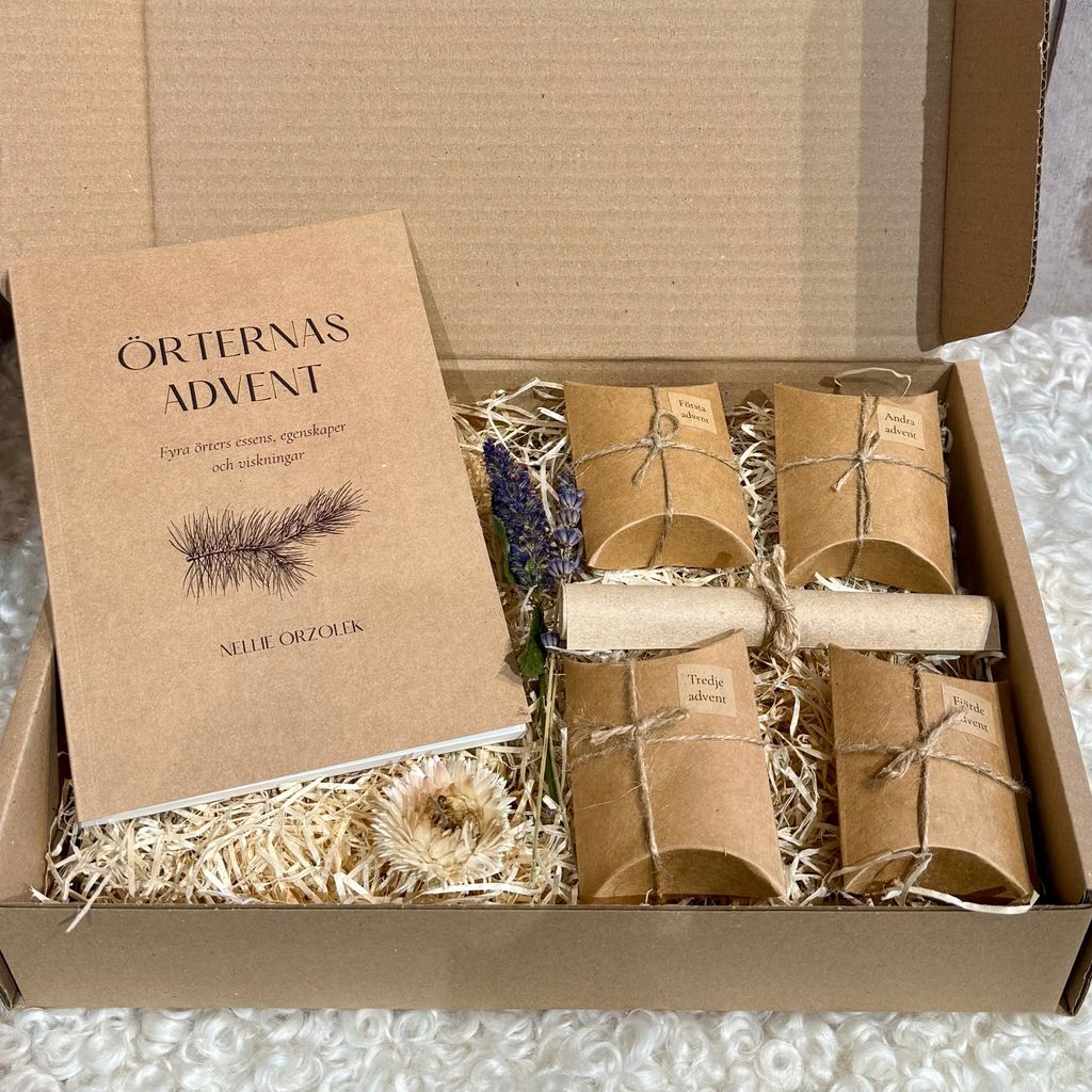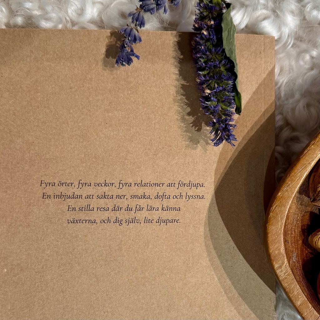 𝐄𝐧 𝐢𝐧𝐛𝐣𝐮𝐝𝐚𝐧 𝐭𝐢𝐥𝐥 𝐚𝐭𝐭 𝐥𝐚̈𝐫𝐚 𝐤𝐚̈𝐧𝐧𝐚 𝐨𝐜𝐡 𝐤𝐨𝐦𝐦𝐚 𝐧𝐚̈𝐫𝐦𝐫𝐞 𝟒 𝐨𝐥𝐢𝐤𝐚 𝐨̈𝐫𝐭𝐞𝐫. En för varje söndag i advent. En inbjudan till en enkel, stillsam, poetiskt och hjärtlig ritual som får vara med dig i december. Kalendern består av örter och en bok.