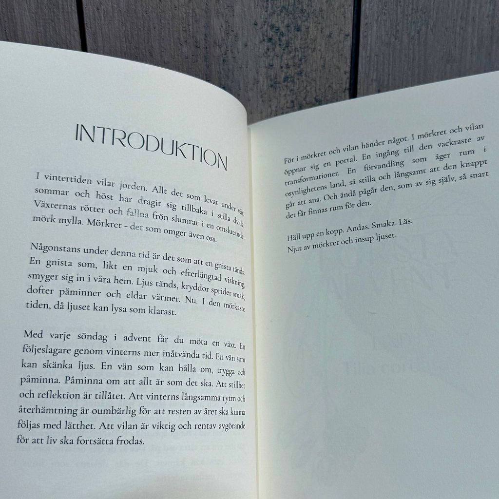 𝐃𝐞 𝐭𝐨𝐫𝐤𝐚𝐝𝐞 𝐨̈𝐫𝐭𝐞𝐫𝐧𝐚, 𝐡𝐚𝐧𝐝𝐬𝐤𝐨̈𝐫𝐝𝐚𝐝𝐞 𝐟𝐫𝐚̊𝐧 𝐨̈𝐫𝐭𝐚𝐠𝐚̊𝐫𝐝𝐞𝐧 𝐨𝐜𝐡 𝐝𝐞𝐭 𝐯𝐢𝐥𝐝𝐚, 𝐤𝐨𝐦𝐦𝐞𝐫 𝐢 𝐭𝐞𝐩𝐚̊𝐬𝐚𝐫 𝐬𝐚̊ 𝐚𝐭𝐭 𝐝𝐮 𝐬𝐣𝐚̈𝐥𝐯 𝐤𝐚𝐧 𝐞𝐫𝐟𝐚𝐫𝐚 𝐝𝐞𝐦 𝐦𝐞𝐝 𝐚𝐥𝐥𝐚 𝐬𝐢𝐧𝐧𝐞𝐧. Tänd ett ljus, brygg en kopp te, ta in, läs och låt örterna följa dig genom advent. En plats för stillhet, reflektion och inspiration.
