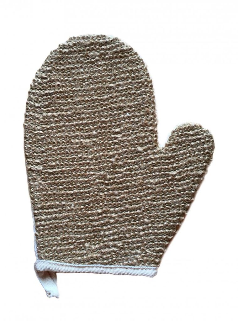 Skrubbvante i jute och bomull. Rengör och avlägsnar gamla hudceller samt sätter fart på din blodcirkulation. 22 x 18 cm
