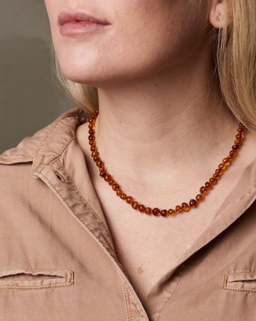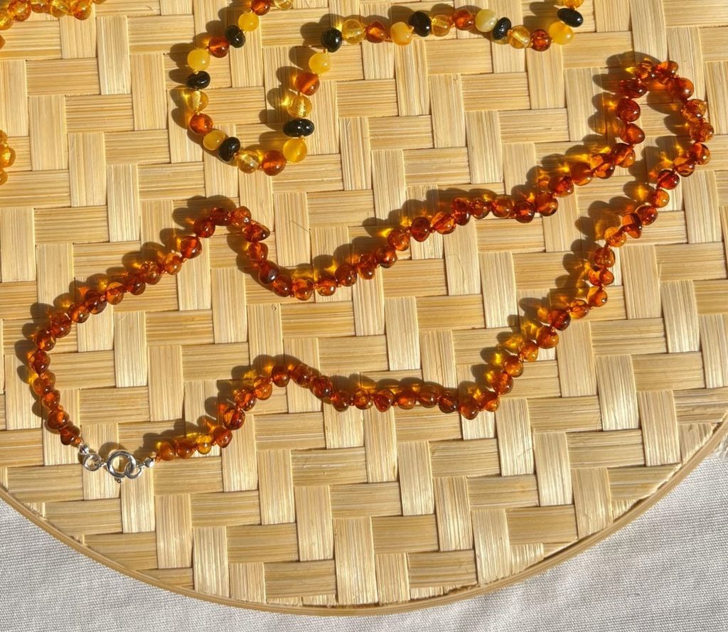 Vackert bärnstenshalsband med äkta bärnsten från Östersjön. Ett handgjort smycke med mycket kärlek från danska Nirrimis, levereras i vacker tygpåse. Finns i 2 storlekar.