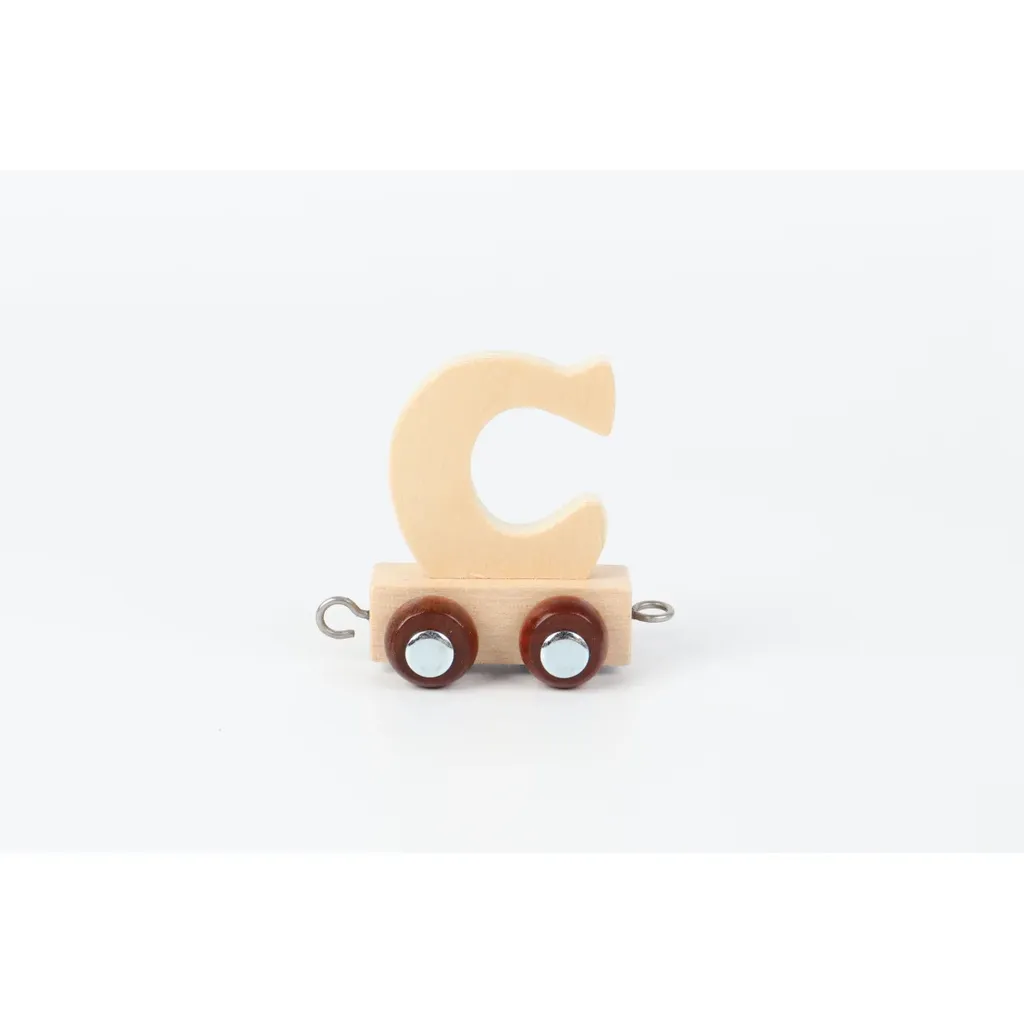 Fina Kinder and Kids namntåg och tågvagn med bokstaven C i naturligt trä är en del av det underbara namntåg, som kan sättas ihop genom att köpa flera delar till namnståget.