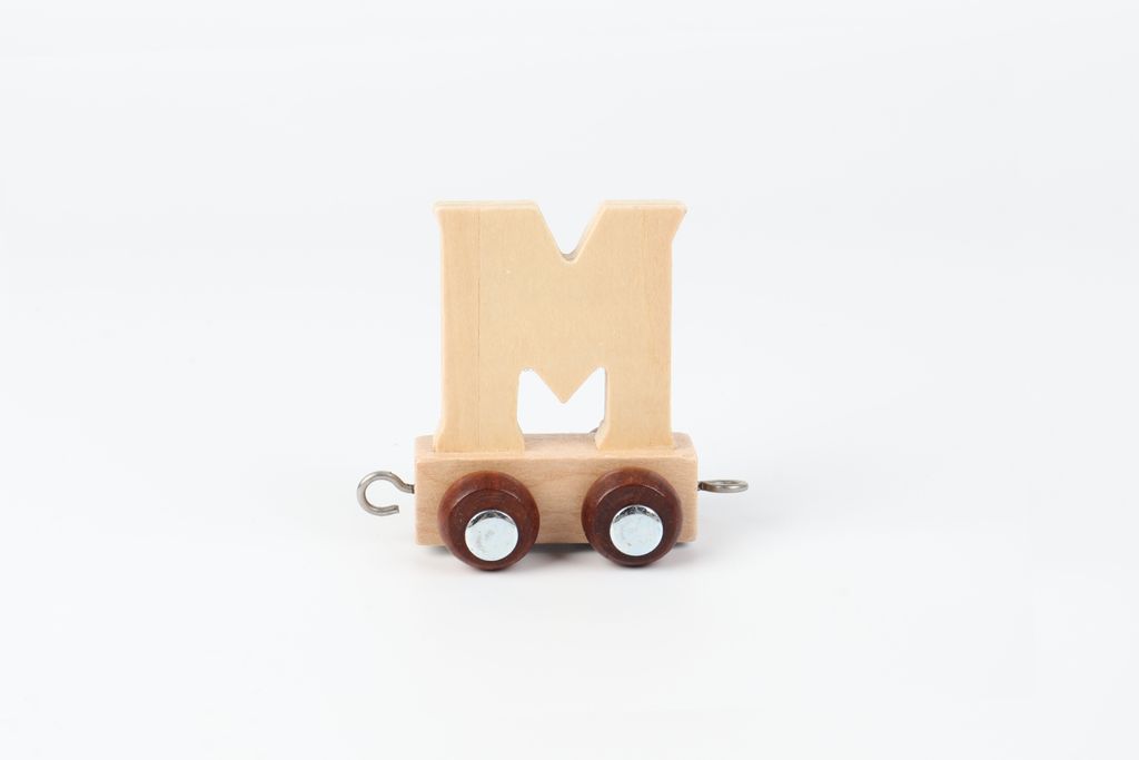 Fina Kinder and Kids namntåg och tågvagn med bokstaven M i naturligt trä är en del av det underbara namntåg, som kan sättas ihop genom att köpa flera delar till namnståget.