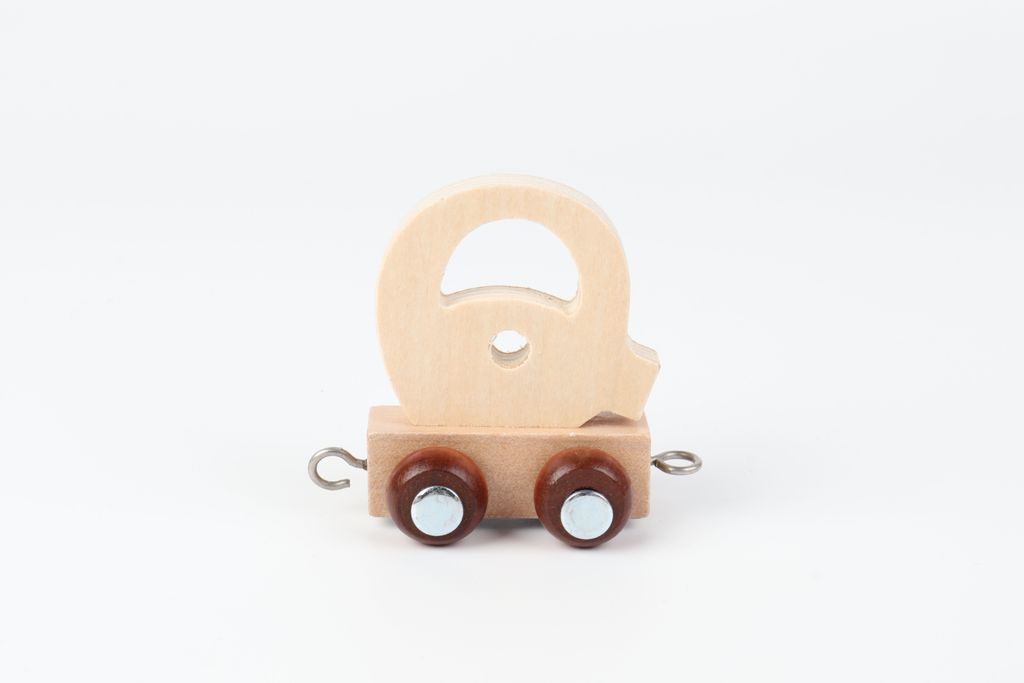 Fina Kinder and Kids namntåg och tågvagn med bokstaven Q i naturligt trä är en del av det underbara namntåg, som kan sättas ihop genom att köpa flera delar till namnståget.