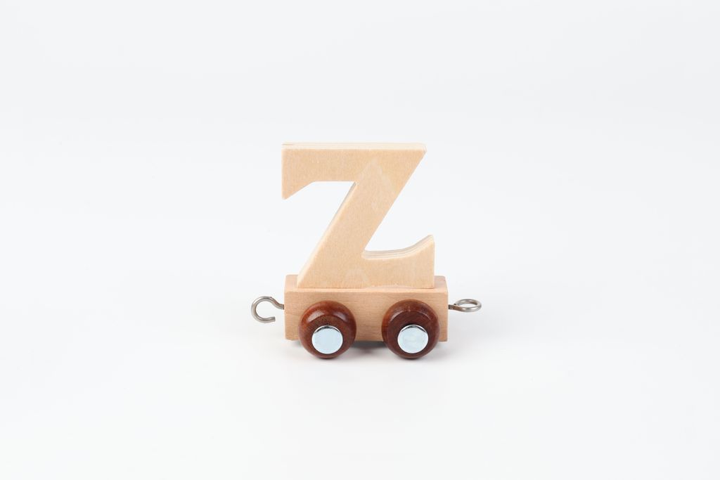 Fina Kinder and Kids namntåg och tågvagn med bokstaven Z i naturligt trä är en del av det underbara namntåg, som kan sättas ihop genom att köpa flera delar till namnståget.