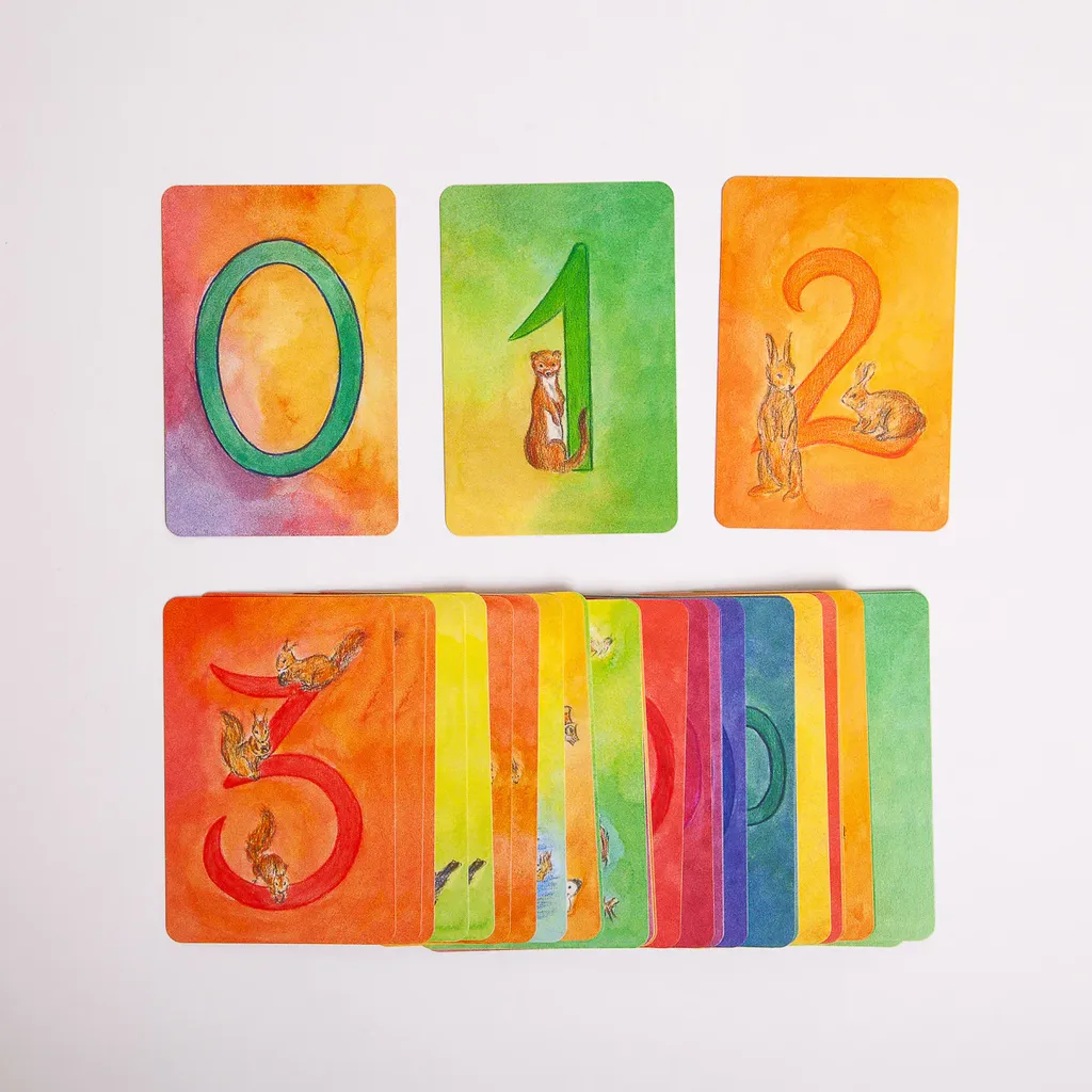 Vackert illustrerade kort som hjälper dina barn att lära sig siffror och stärka sina matematiska färdigheter. Varje tal är tydligt representerat med antalet djur som refererar till talet. Även för små barn är det lätt att förstå att två kaniner plus sju fjärilar är lika mycket som nio möss. Denna enkla förståelse av siffrorna genom lek hjälper senare i högre matematik.