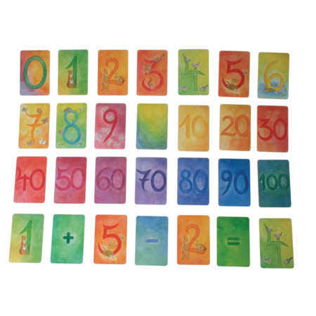 Innehåll: 1x 0, 10, 20, 30, 40, 50, 60, 70, 80, 90, 100, +, -, x, :, =, och 2x 4, 5, 6, 7, 8, 9 och 3x 3 och 5x 2 och 10x 1 + idéer för lek på tyska och engelska.