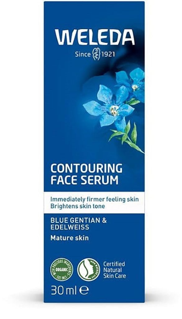 Weleda Contouring Face Serum är ett kraftfullt ansiktsserum särskilt utvecklat för att möta hudens förändrade behov vid klimakteriet och åldrande. Med hjälp av Collagen+ Active Complex – en potent växtbaserad sammansättning med blå gentiana, edelweiss och centella asiatica – stärker serumet hudens naturliga kollagenproduktion och förbättrar fastheten. Den lättabsorberade formulan ger en direkt trippelverkande effekt: huden upplevs fastare, intensivt återfuktad och näringsboostad. Resultatet blir en fylligare hud med synligt reducerade linjer och rynkor. Doften är naturlig och harmonisk – en finstämd blandning av eteriska oljor med lavendel, mandarin och varmt sandelträ som skapar en lugnande upplevelse vid varje applicering.