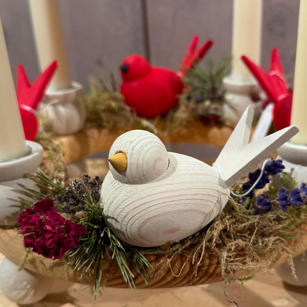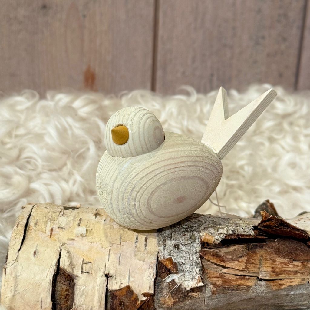 En fågel i trä, hantverksmässigt gjord med kärlek av Larssons trä i Tranemo, Sverige. En charmig liten sångfågel som kan liva upp fönsterbrädan, köksbordet eller kontorshörnan. Fågeln är sitter stabilt, men har även ett hål för en träplugg på undersidan dolt av ett litet klistermärke för att den ska kunna kombineras med fler produkter som ljusstakar och pappershållare.