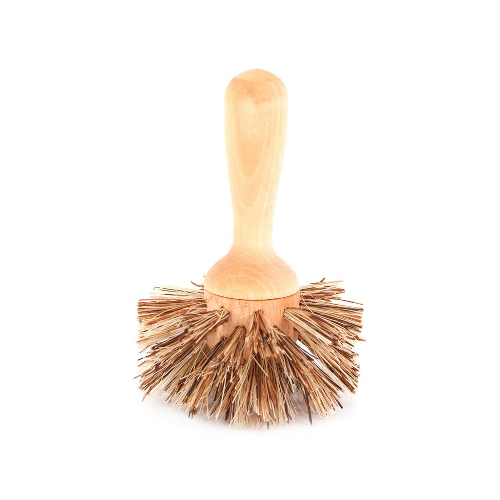 Grovdiskborste från Iris Hantverk i björk och unionblandning. Rengör bra vid lite tuffare rengöring av grytor och kastruller. Är även en utmärkt krukborste.