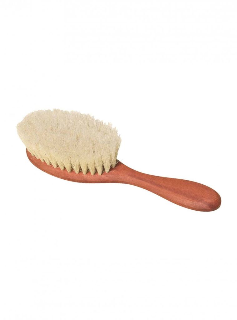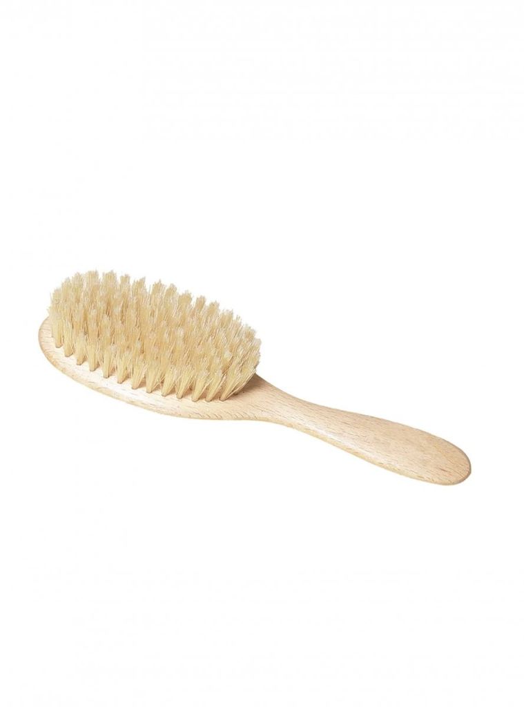 Oval hårborste gjord i vaxat bokträ. Mjukare borst som är snäll mot både hår och hårbotten. 18,5 cm lång.