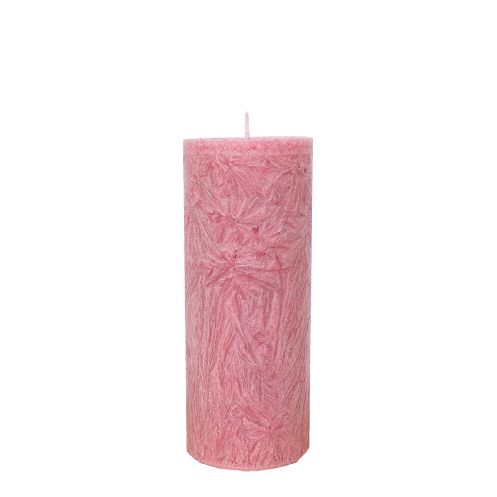 Gammelrosa-färgat Crystalljus av 100% stearin. 15 cm långt och 60 mm i diameter (Ø).