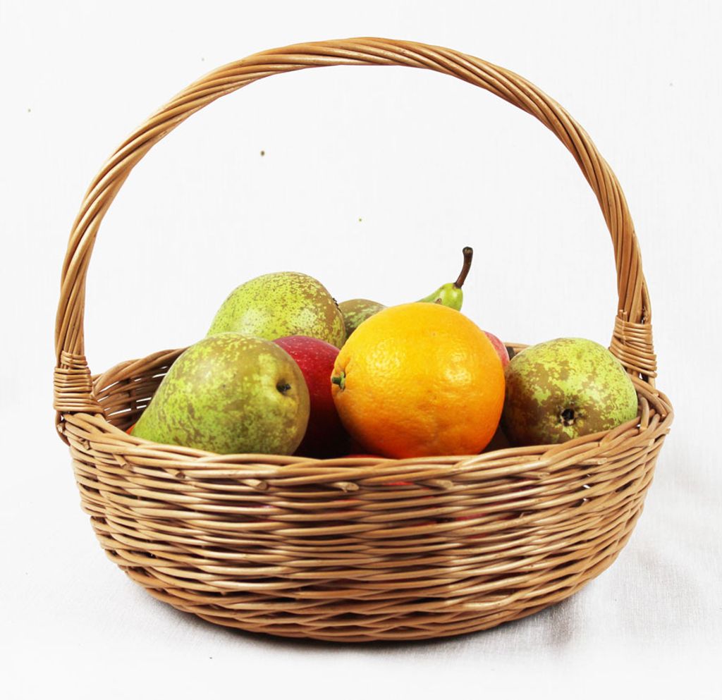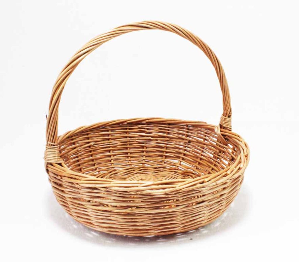 En härlig lite mindre korg i skalad pil. Lätt och bekväm att bära i en böljande rund form. Rymmer 3 kg frukt (och 2 kg godis). Även perfekt som barnkorg då den är tålig samt enkel att bära!