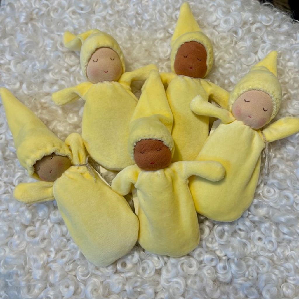 Somna med en mysig vän vid din sida. Denna gosiga, mjuka dockan är ett handgjort konsthantverk. Gjord helt & hållet i ekologiska, giftfria, & naturliga material för ditt barn. Fylld med lugnande lavendel, som avger en mild och trygg doft, iklädd en gosig velourdräkt & sovluva. Blir både en nyfödds bästa sovkompis, eller ett äldre barns trygga vän. Konsthantverk av den duktiga waldorf-dockmakaren Ida (Lilla Timotej).