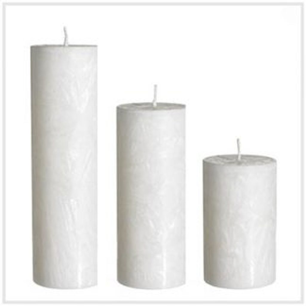 Vitt Crystalljus av 100% stearin. 15 cm långt och 60 mm i diameter (Ø). Brinntid 38 timmar.