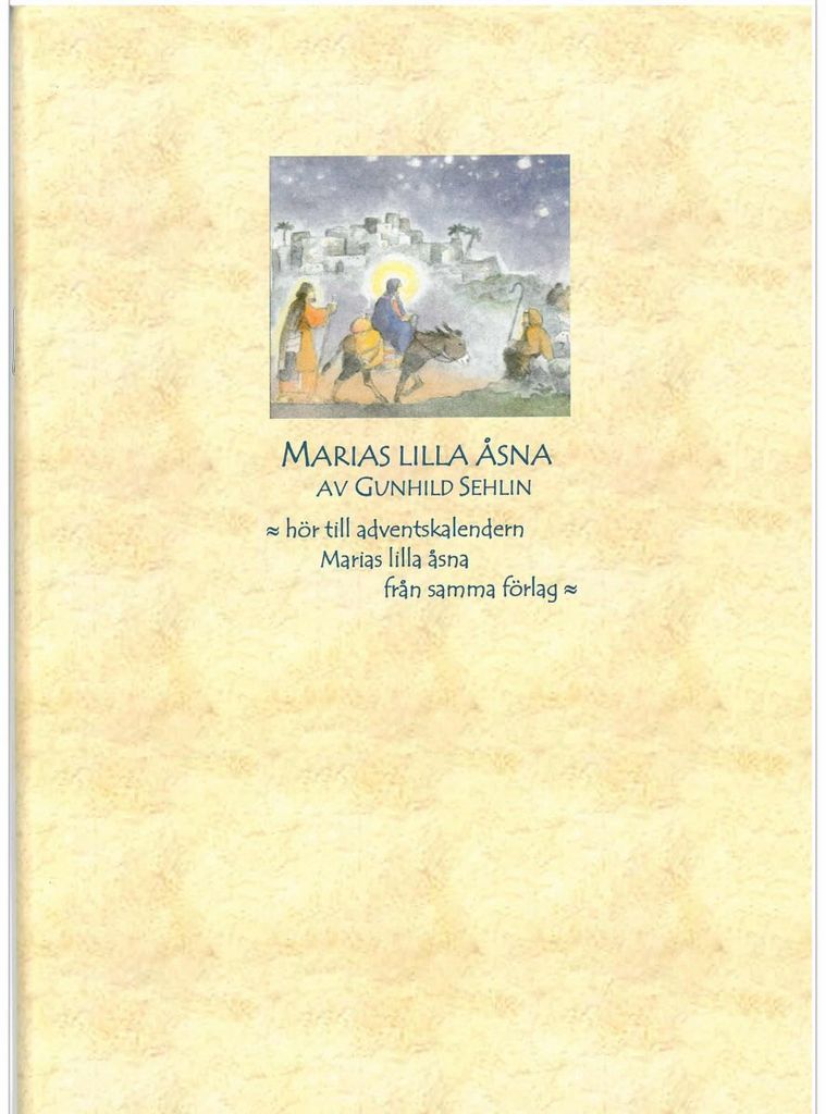 Adventskalendern ”Marias lilla åsna” med tillhörande berättelse av Gunhild Sehlin är verkligen en klassiker hos oss🌟 Vi följer Maria, Josef & åsnans resa till Betlehem, med en bit av sagan var dag fram till jul. En kalender som kommit till glädje i många hem genom åren, och fortsätter sprida adventsstämning varje december. Berättelsen Marias Lilla Åsna av Gunhild Sehlin har givits ut igen och igen i ett halvt sekel och är översatt till 12 språk.