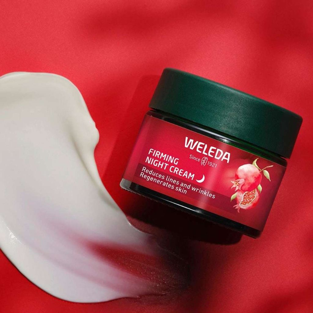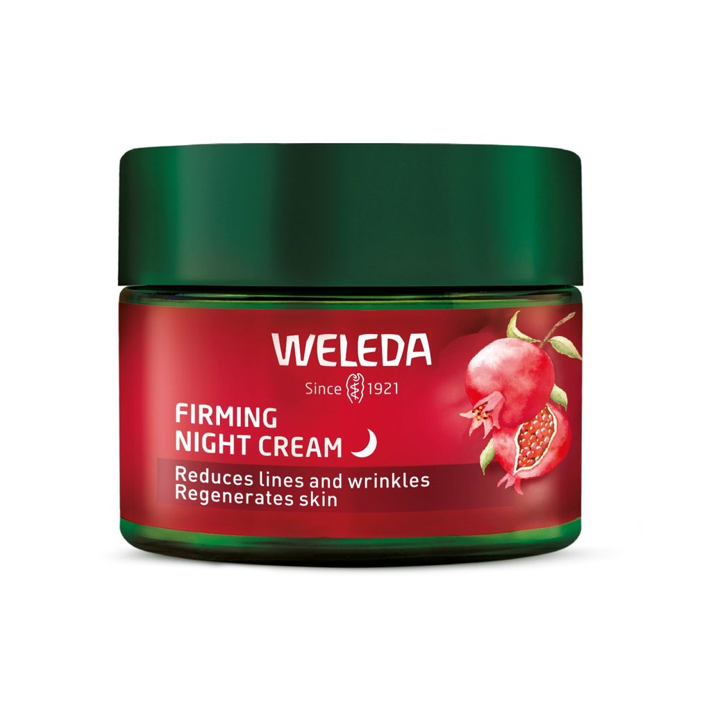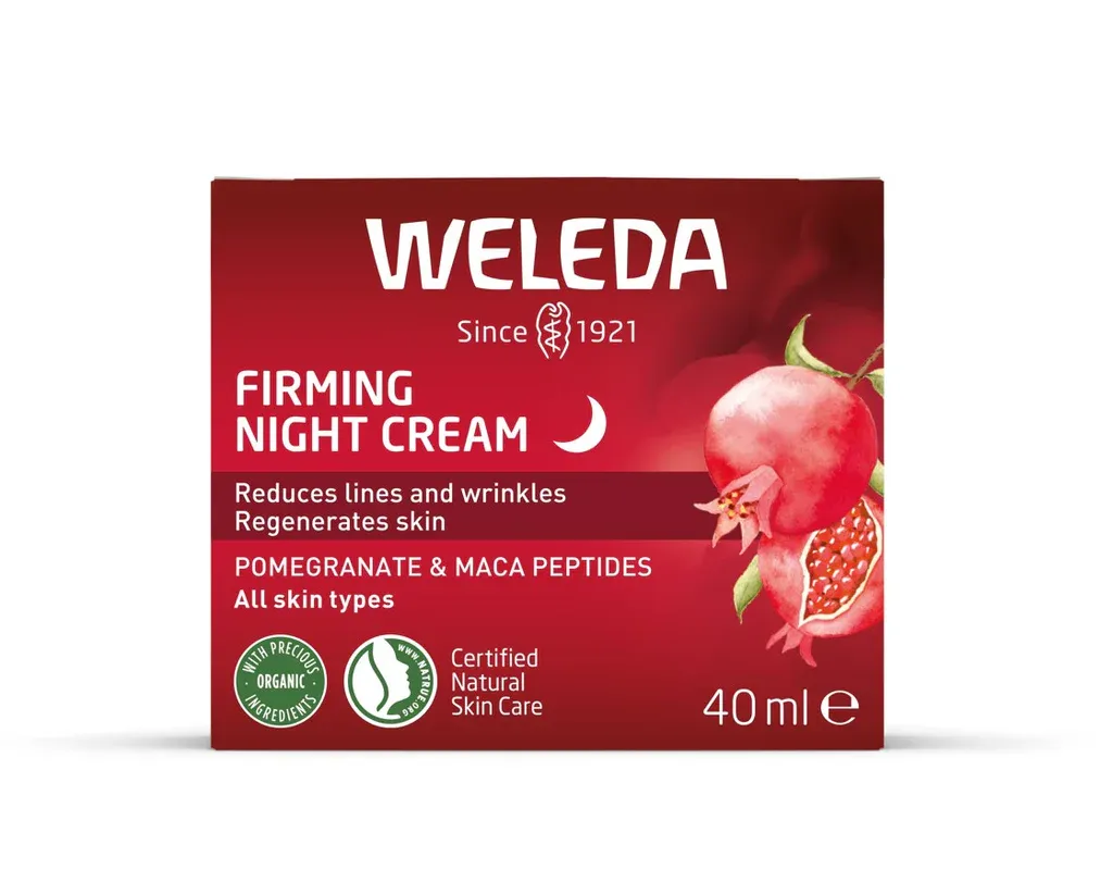 Weleda Firming Night Cream är en lättabsorberad nattkräm som stödjer hudens viktiga återhämtning på natten samt ger en fastare hud och reducerade rynkor. Formulan ger näring till huden från naturliga växtoljor och ger en ökad återfuktning. Ingredienser som ekologiskt granatäpple och maca-peptider stödjer effektivt hudens reparationsprocess och ger lyster samt jämnare hudton. Den naturliga doften är baserad på en blandning av eteriska oljor – sprudlande apelsin i kombination med den indiska blomman Davana samt varm vanilj.