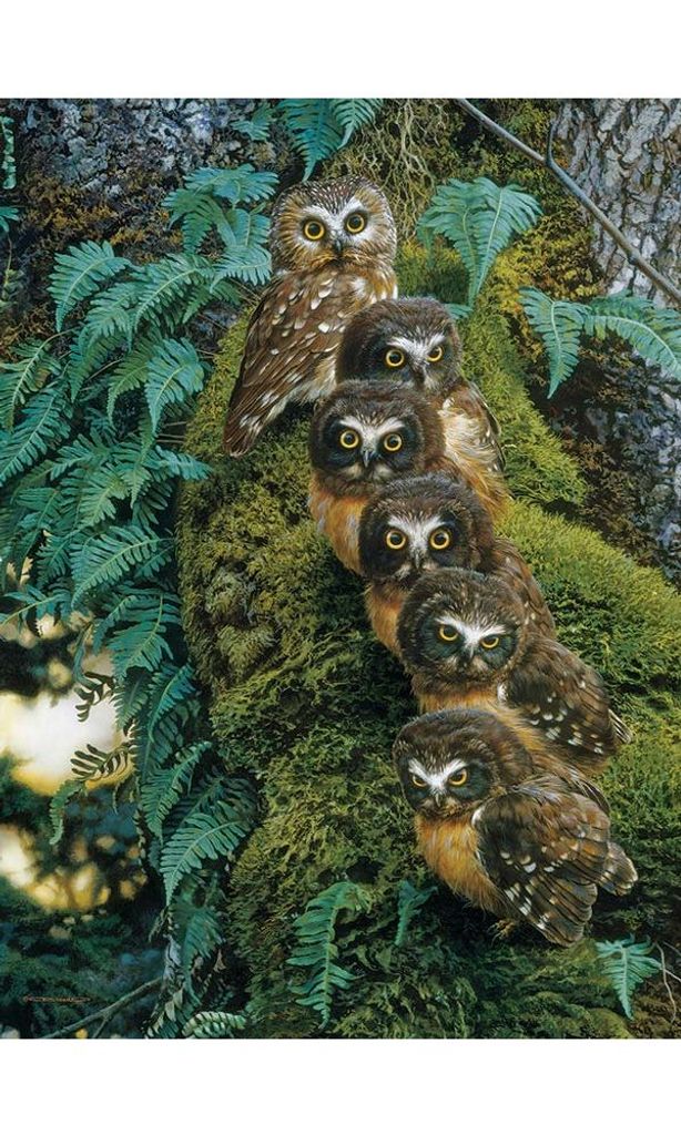 Sex par ögon som tittar på dig från en mossig gren, illustrerad av Carl Brenders Antal bitar: 1000