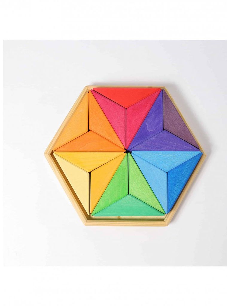 Pussel i trä, 6 kantig, i komplementfärgerna