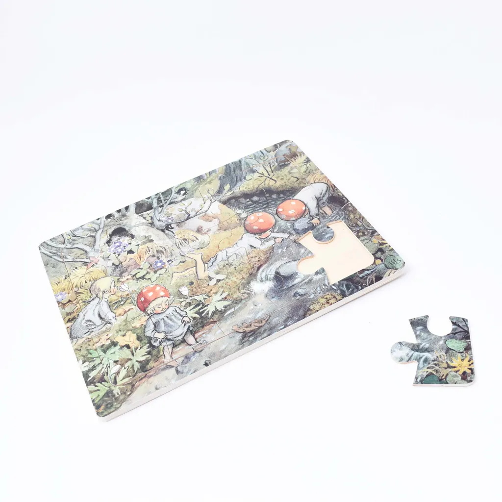 Ett charmigt rampussel i trä med vackert motiv från Elsa Beskows älskade berättelse om Tomtebobarnen. Pusslet består av 15 rejäla bitar som ligger i en stadig ram – perfekt för små händer att hantera. Träbitarna är tåliga och lätta att greppa, vilket gör detta pussel till ett utmärkt val för barn som övar på sin finmotorik och problemlösning. Motivet är rikt på färger och detaljer, och inspirerar till både lek och samtal om naturen, årstiderna och sagans värld.