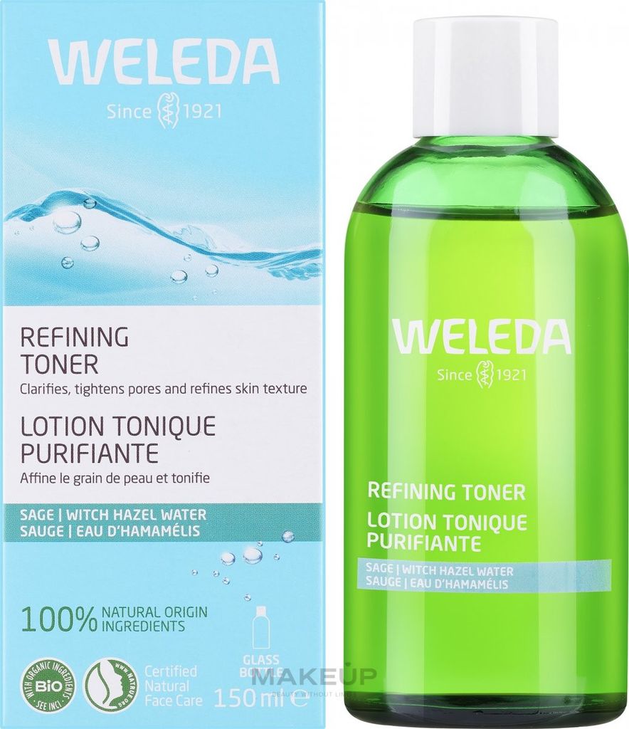 Weleda Refining Toner är ett djuprengörande och återfuktande ansiktsvatten som passar till en normal, kombinerad hud eller hud med tendens till blemmor. Refining Toner har en lätt sammandragande effekt på porerna och ökar hudens naturliga lyster. Det uppfriskande ansiktsvattnet har en doft av citron, apelsin och salvia.