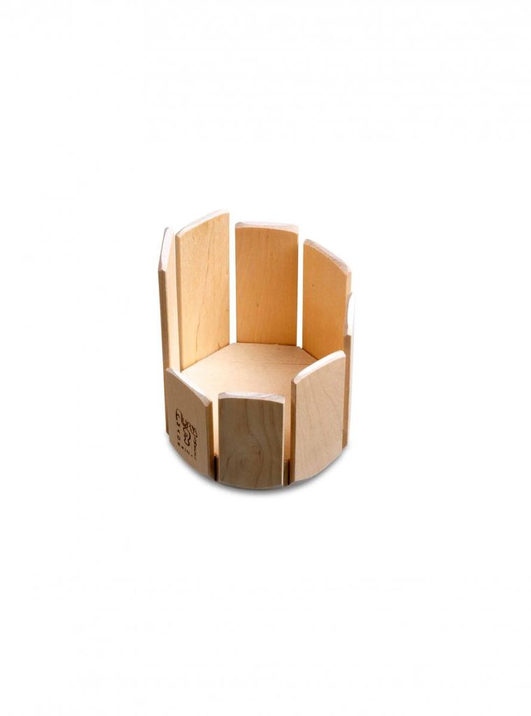 8 klangstavar i trä med resonansbotten ger en rad stumma men starka toner då man låter klubban cirkla runt inuti.