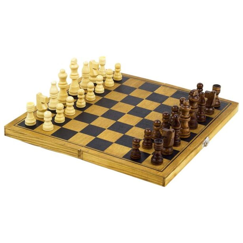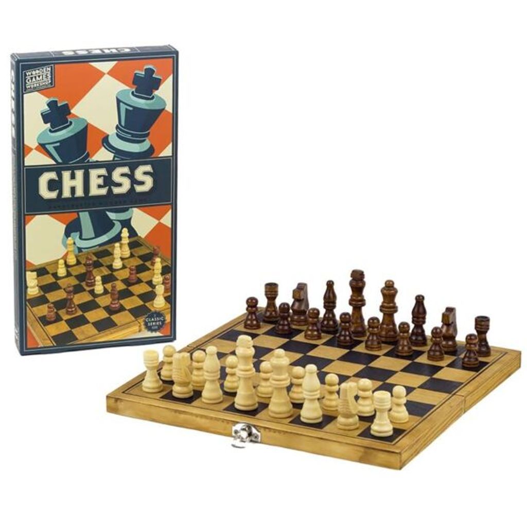 –Ett vackert schackbräde i trä som viks ihop – smidigt att ta med! – Klassiska schackpjäser i robust trä, redo för kamp! passar både nybörjare och minischackmästare