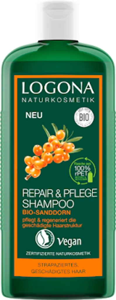 Repair and Care Schampo med havtorn tar hand om skadat och slitet hår. Den rika, veganska reparations- och vårdformeln av naturligt ursprung med ekologisk havtornsolja och milda tensider jämnar ut den skadade hårstrukturen och förhindrar hårskador.