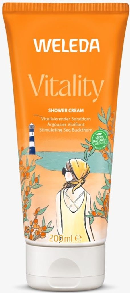 Naturlig vitaliserande duschkräm med biodynamiskt odlad havtornsolja, vårdande sesamolja och milda sockertensider. Rengör din hud varsamt utan att torka ut den.