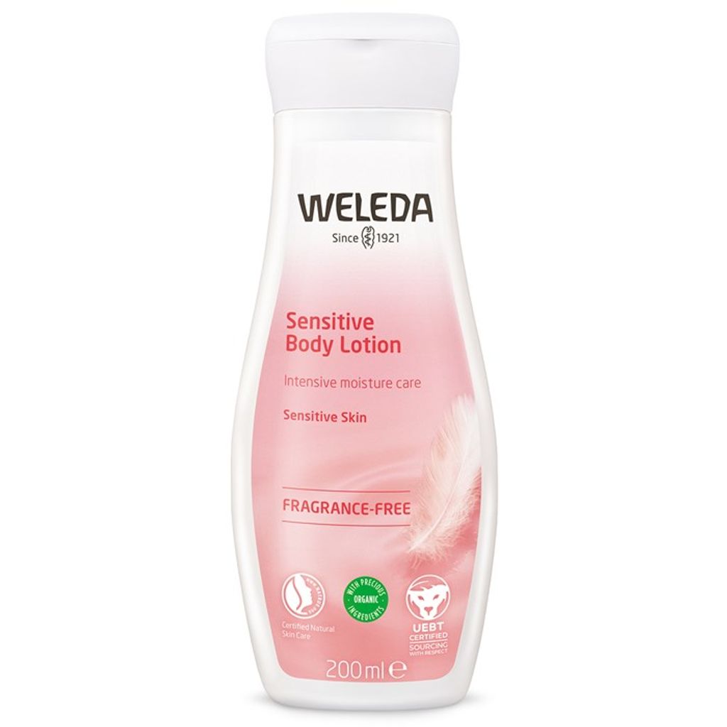 Weleda Sensitive Body Lotion är en mild och återfuktande kroppslotion framtagen för känslig hud. Baserad på mjukgörande jojobaolja och svalkande kokosolja som ger en silkeslen känsla och stärker hudbarriären.