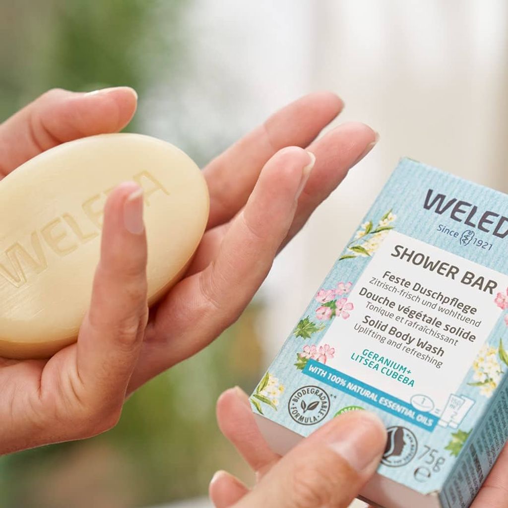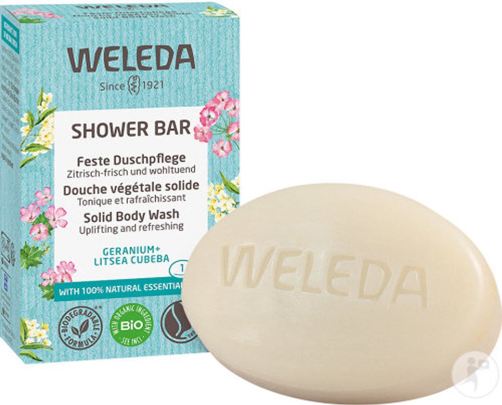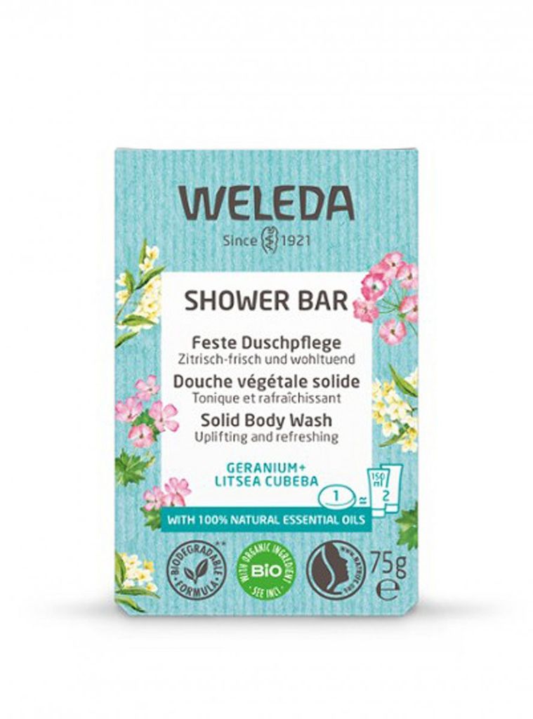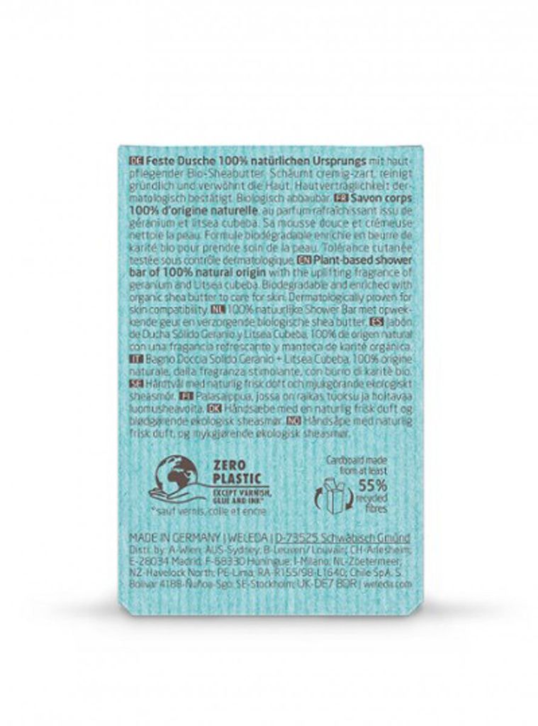 Omsluts av den levande och uppfriskande doften av den blommiga blandning av pelargon och litsea cubeba. Doften av 100 % naturliga eteriska oljor kommer till liv i duschens ångor och ger din kropp och ditt sinne en uppfriskande känsla. Weledas biologiskt nedbrytbara formula av 100 % naturligt ursprung tar hand om din hud. Det krämiga skummet berikat med ekologiskt sheasmör och växtbaserat glycerin rengör huden utan att torka ut.