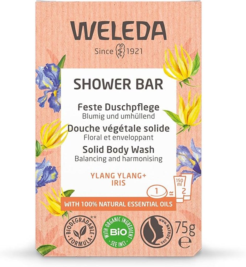 Skäm bort dina sinnen i den ljuvliga doften av söt ylang ylang och elegant iris. Doften med 100 % naturliga eteriska oljor kommer till liv i duschens ånga för en mjuk upplevelse för kropp och själ, medan den biologiskt nedbrytbara formulan av 100 % naturligt ursprung tar hand om huden. Det krämiga löddret berikat med ekologiskt sheasmör och växtbaserat glycerin rengör huden utan att torka ut. Löddret sköljs lätt bort – glöm inte att stänga av vattnet medan du duschar för att spara vatten!