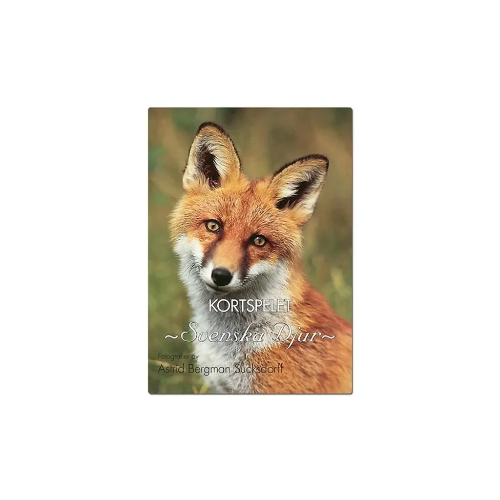 I kortspelet Svenska Djur lär du dig både vad djuren heter på Svenska och Engelska. Ett roligt kortspel med fina fotografiska bilder på våra nordiska djur. Fotografier av Astrid Bergman Sucksdorff.Samla par, t ex Räv och Fox, Horse och Häst, Varg och Wolf. Bra träning i lätta engelska glosor.