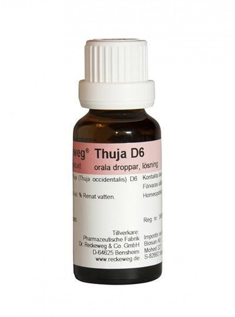 10 g innehåller: Thuja D6 (Thuja occidentalis)