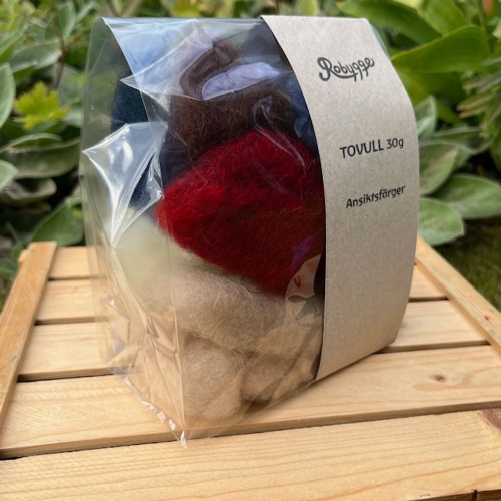 Vår tovull är perfekt när du vill låta händerna och fantasin arbeta tillsammans! I denna mix med ansiktsfärger får du en precis lagom mängd av specialfärger - utvalda för att passa ansiktsdetaljer som läppar, kind, ögon & mun till alla sorts figurer. Färger: Brun, Beige, Vit, Röd, Blå, Svart.