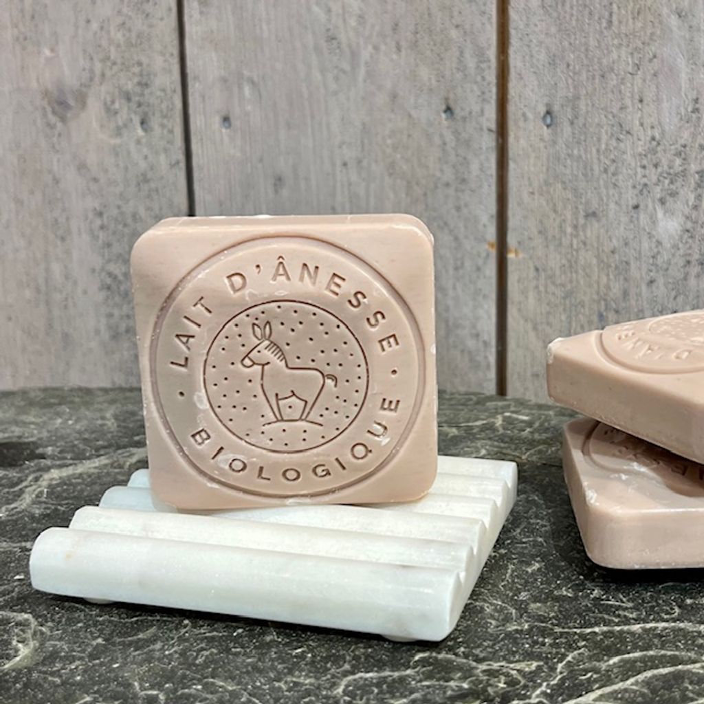 En otroligt mjuk och len tvål med ekologisk åsnemjölk som tack vare sitt höga innehåll av vitaminer och mineraler ger intensiv näring och mjukar upp huden med en doft av monoi.