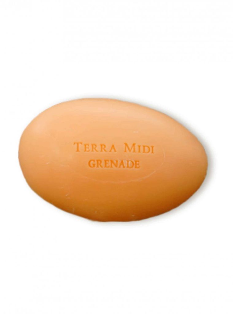 En fast tvål från Terra Midi med pigg doft av grapefrukt och granatäpple. Med dofter från Provence oliv- och apelsinlundar, den sensuella formen och ett rikligt lödder blir dessa tvålar favoriter i duschen. Innehåller inga djurfetter, ej djurtestade. Med olivolja och återfettande karitésmör. Tvålarna håller ihop och kladdar inte. Rosmarinolja är tillsatt i alla de olika tvålarna - inget annat konserveringsmedel behövs!