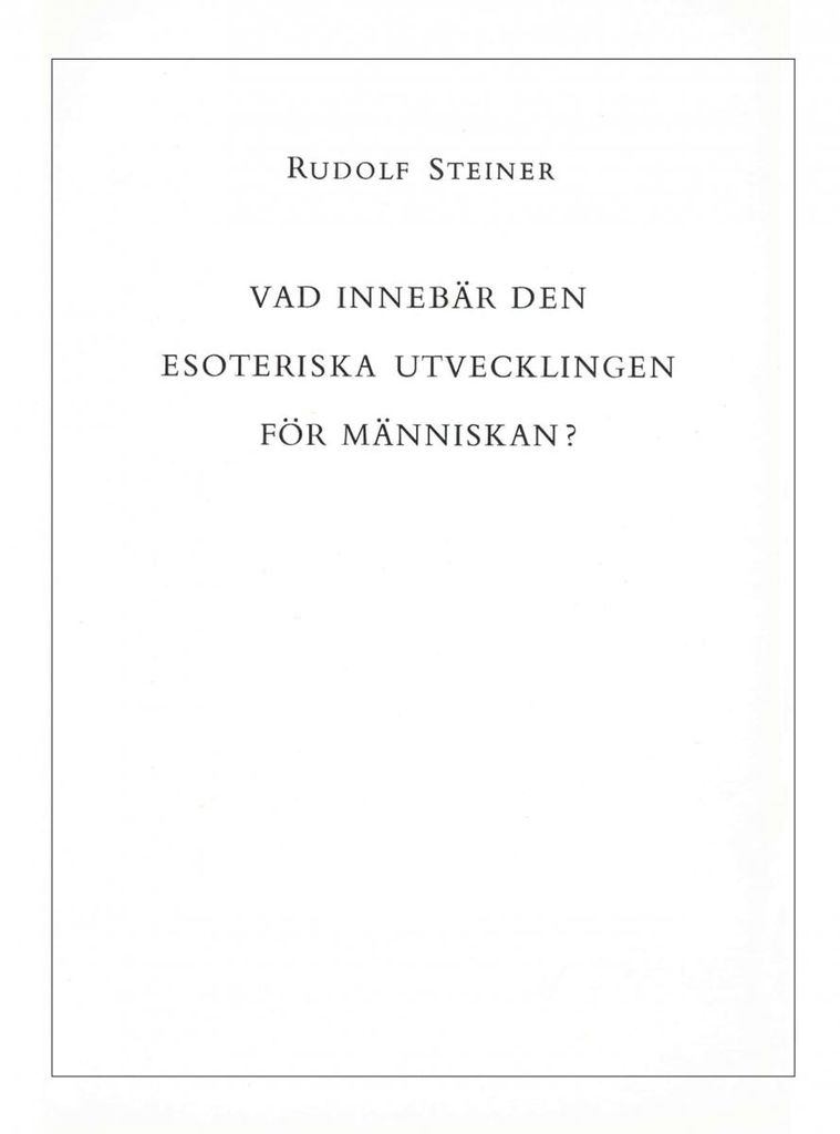 Vad innebär den esoteriska utvecklingen för människan?, Rudolf Steiner