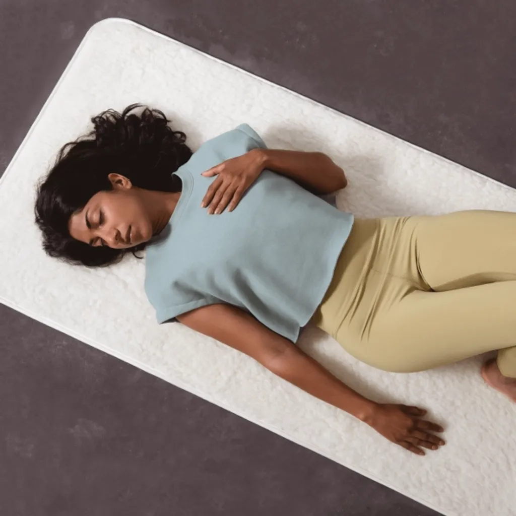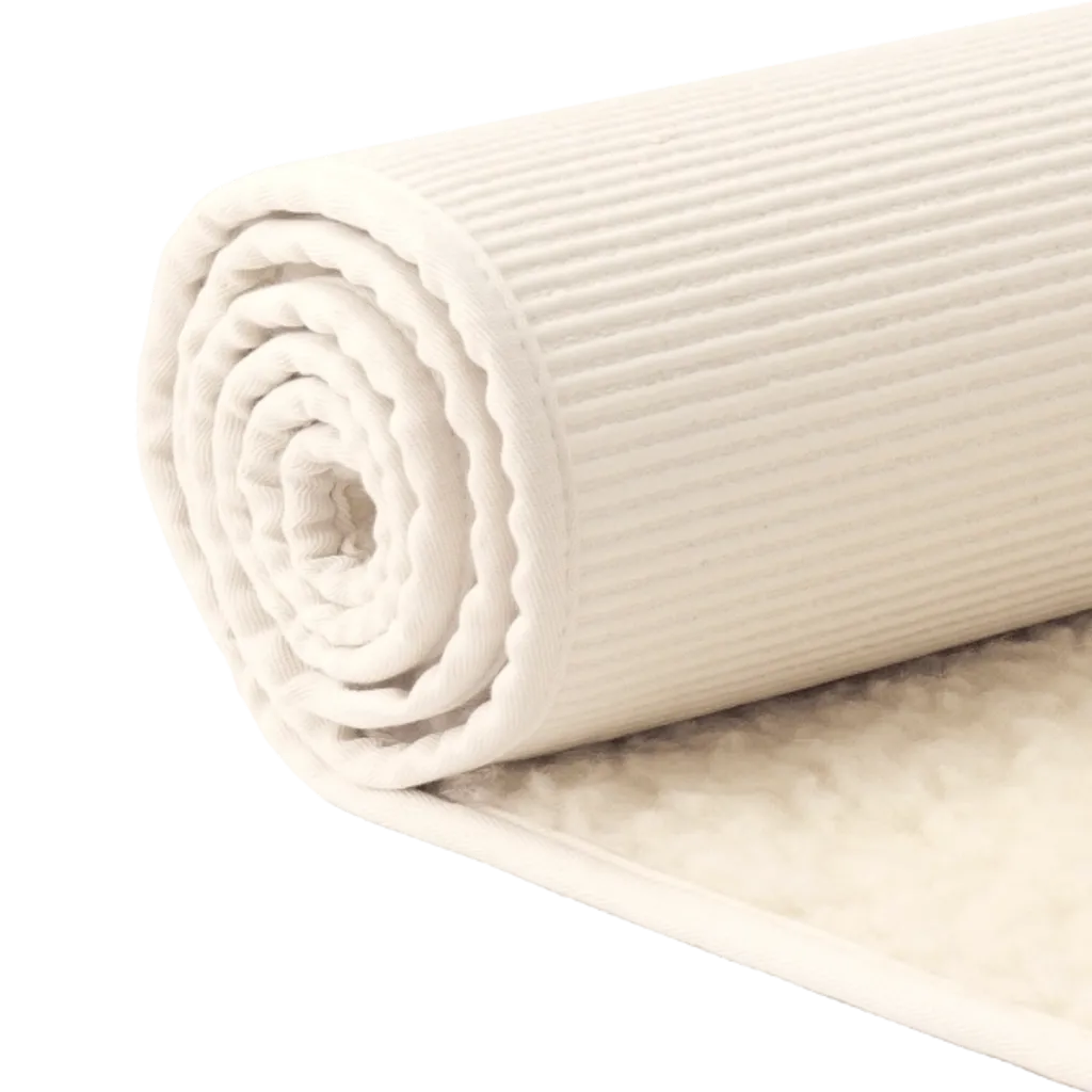 Yogamattan av merinoull med halkfri latexbaksida är behagligt varm, skyddar mot golvkyla och är idealisk för mjuka yogastilar och meditation.